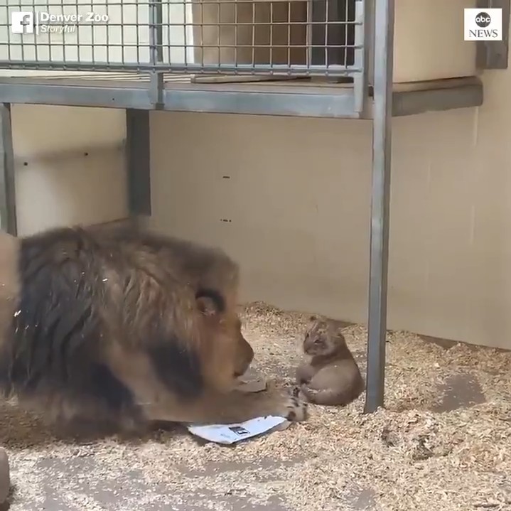 MEET THE FAMILY: Adorable lion cub meets his father and big sister for the first time at Denver Zoo, Colorado. https://t.co/thCxHhE8CC pic.twitter.com/NlMGwUza6n