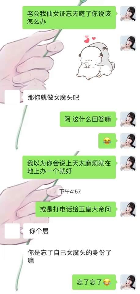 各位男生,女友說「我的仙女證忘在天庭,怎麼辦」,是想讓你說一些甜言蜜語,向她表達愛意,而不是讓你潑冷水啊~