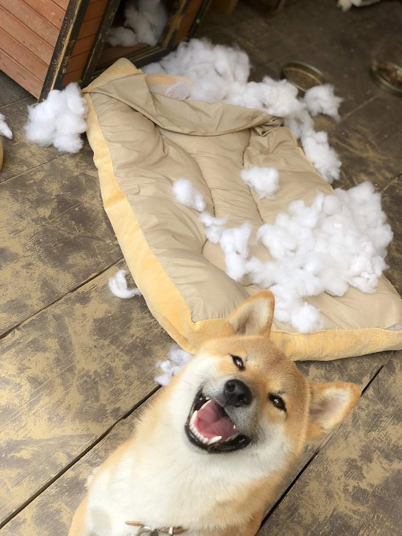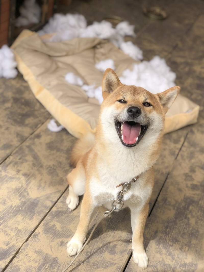 這隻柴柴真的很會餒!拆家了居然還會求原諒啊?!笑得那麼燦爛,真的以為主人會不生氣嗎?不過就算被氣到,主人也很快就會原諒牠的啦~笑