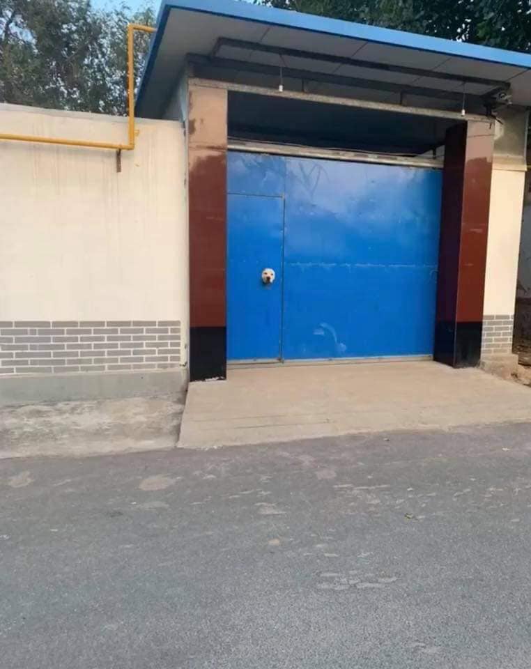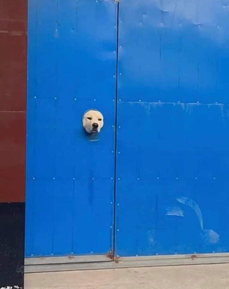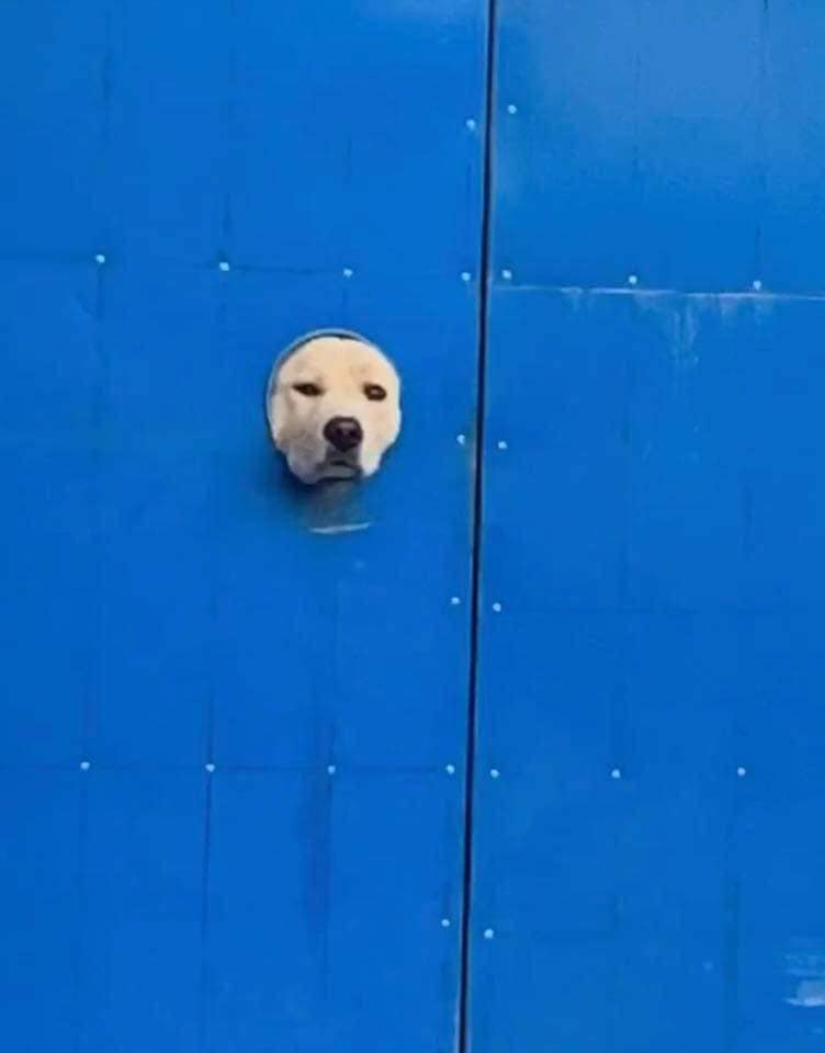 ▼原來所謂的「新潮防盜鎖」其實是一隻狗狗把自己的頭伸進門把的洞口啦!牠這個樣子讓路人被逗笑,網友也直呼好療癒,好想親眼看看牠,跟牠互動呢~