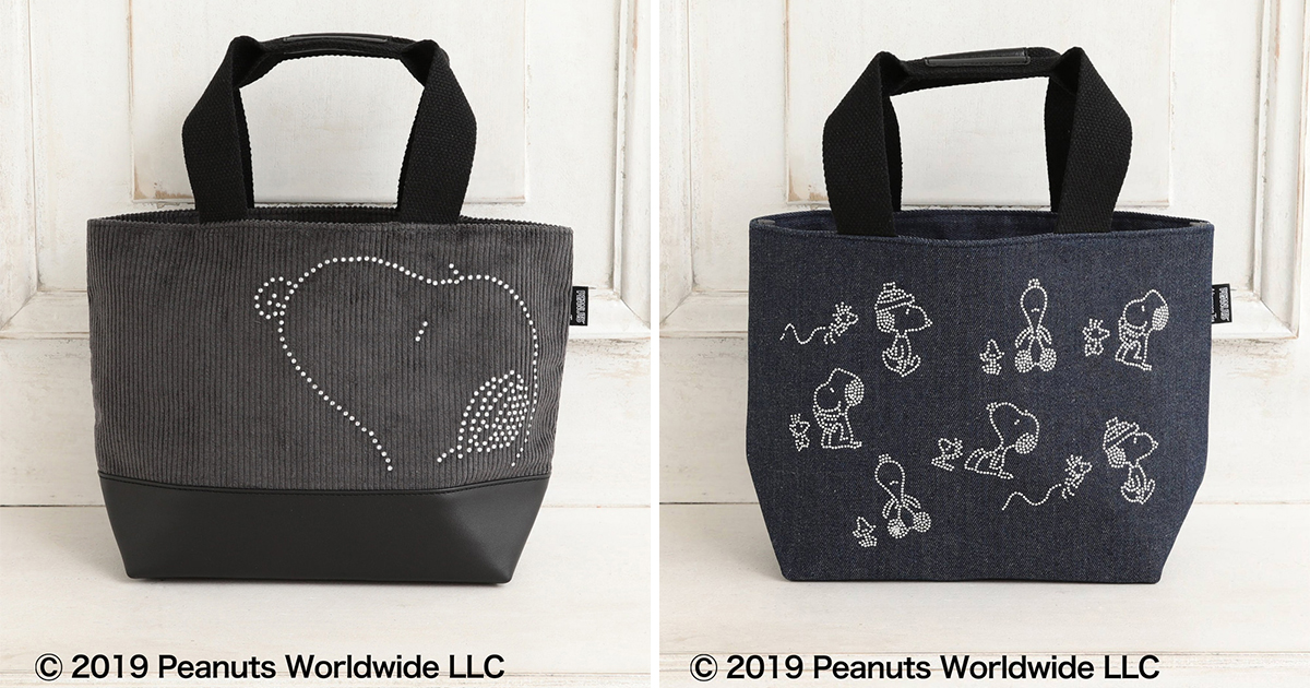 ▼史努比的小托特包,在深色丹寧布上妝點著Bling Bling的史努比,兼具時尚跟可愛。