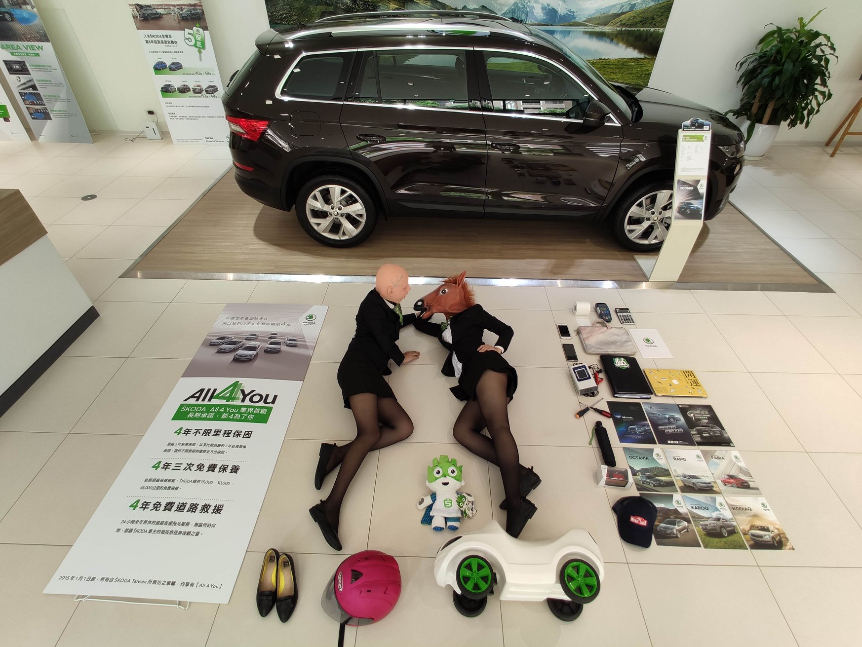 ▼「Skoda榮陞汽車」也分享了她們頭戴動物頭套的畫面,有些人也認為,重點幾乎都放上銷售顧問上,不太像開箱文啦~