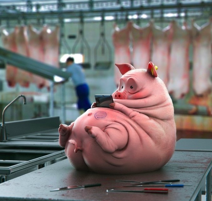 ▼這是豬肉工廠啊!快點放下平板逃跑吧!
