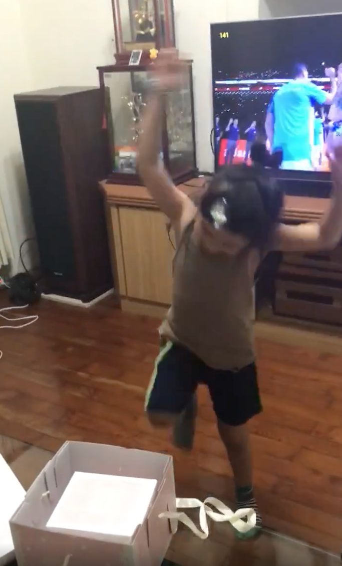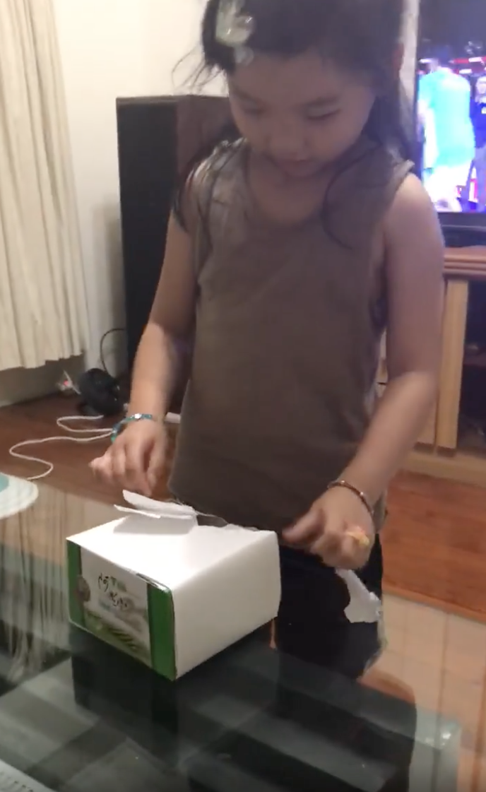 ▼禮物盒開始慢慢變小了,應該很快就要看到真正的禮物了吧?此時,一旁在看的媽媽都笑到不行了。