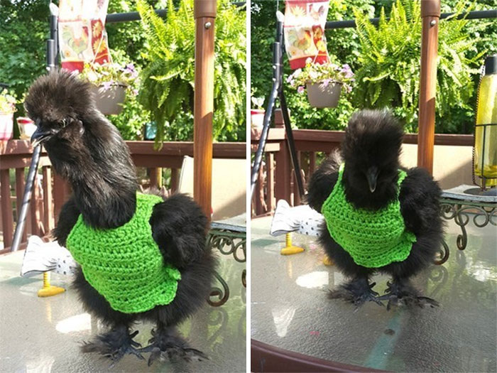 不讓雞覺得冷!農場主人特製毛衣 潮流雞散步變「時尚伸展台」