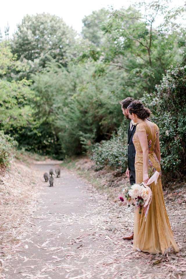 ▼今年9月,即將步入婚姻殿堂的Sarah和Zach與攝影師Kathryn White約定,到金門公園拍婚紗照。公園裡植物繁茂,拍出來的照片很漂亮,但這裡也生活著很多動物。