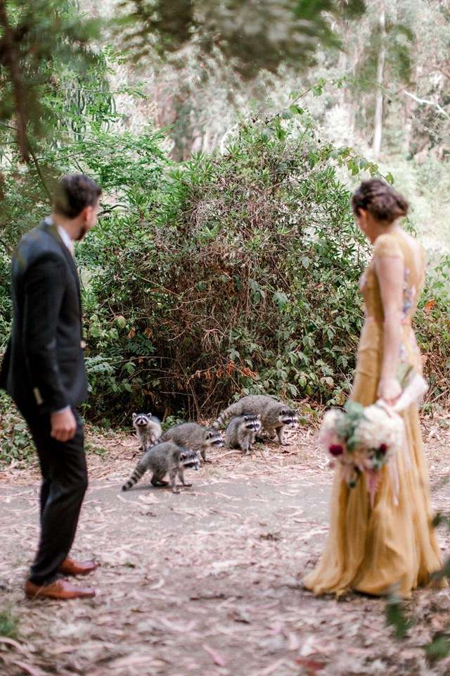 2019年09月27日拍婚紗照的時候,新人是絕對的主角,如果被搶了風頭一定很不開心。但美國舊金山的這對新人卻有一番奇遇。他們在自己的婚紗照裡成為了配角,不過是心甘情願的,因為來「搗亂」的是一群超可愛的浣熊~