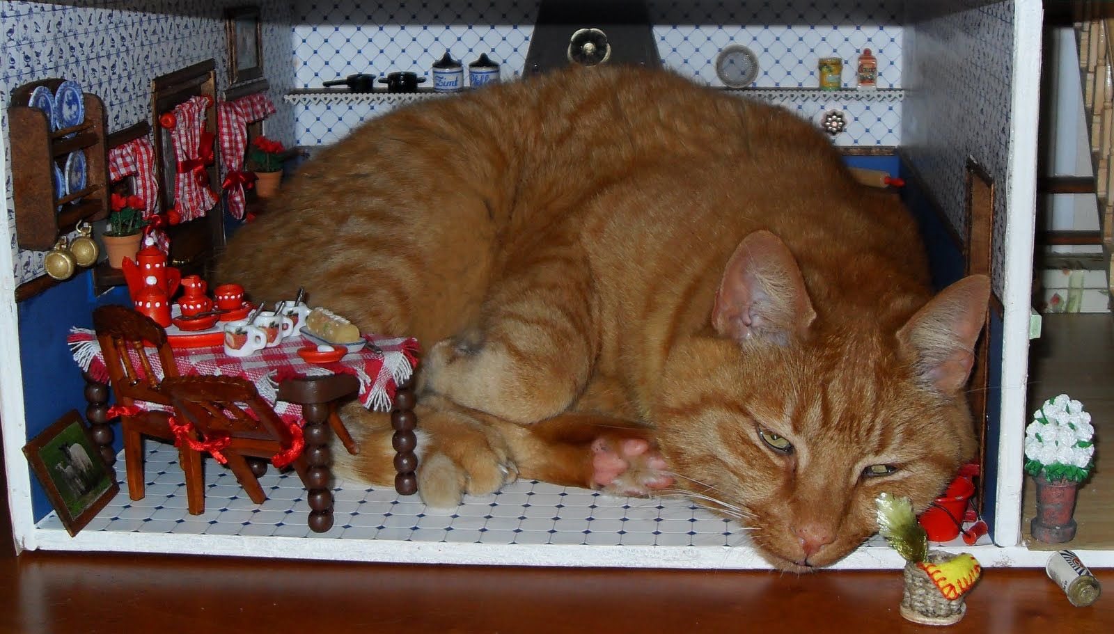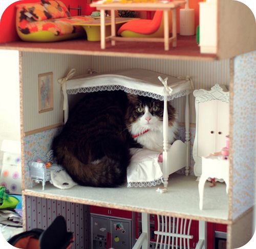 ▼不過仔細一看才發現,原來只是貓咪跑到了娃娃屋玩耍的照片啦!