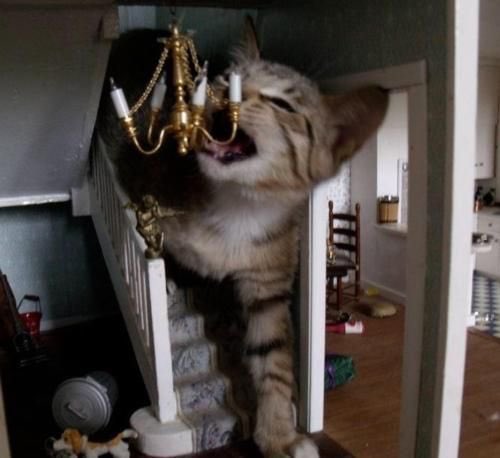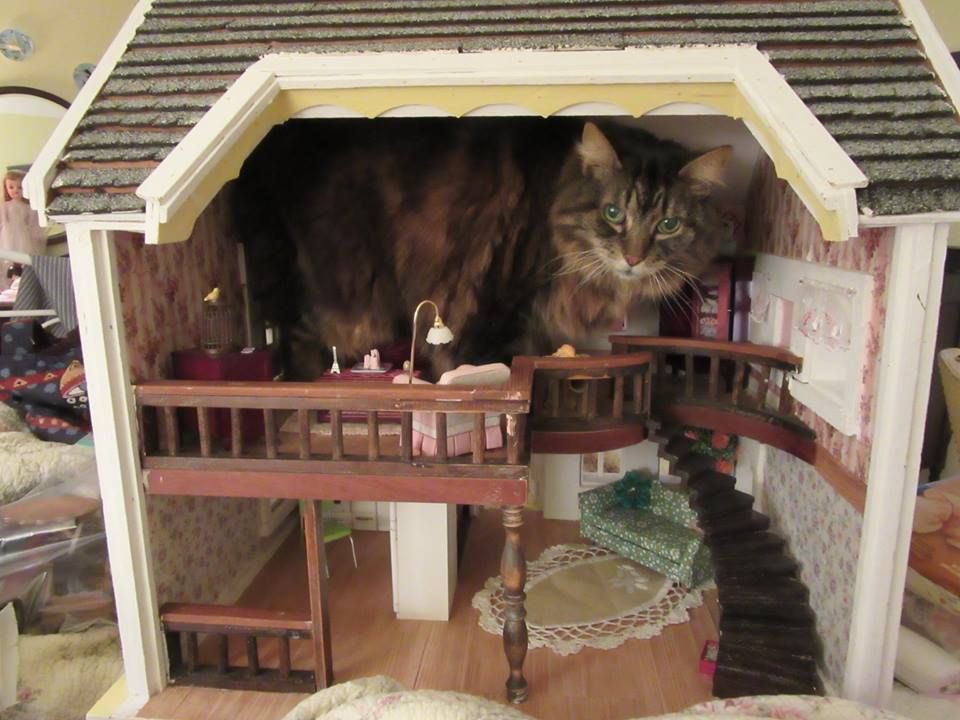 對許多貓奴來說,如果貓咪的體型真的變得如此巨大,也許他們反而會有「夢想成真」的感覺吧!不過貓咪和娃娃屋放在一起竟然完全沒有違和,這真是太令人意想不到了!