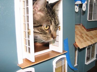 ▼喜歡狹小空間的貓咪,來到娃娃屋當中可說是如魚得水!