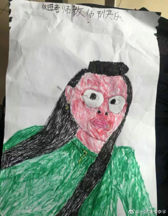許多學生為了感謝老師的指導,都會選擇在教師節時給老師送上一些小禮物。下面這個老師也一樣收到了來自學生的禮物,而且是一副親手畫的肖像畫…只是,老師看到自己長的樣子,當場就有一種說不出來的複雜感受。