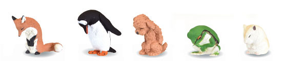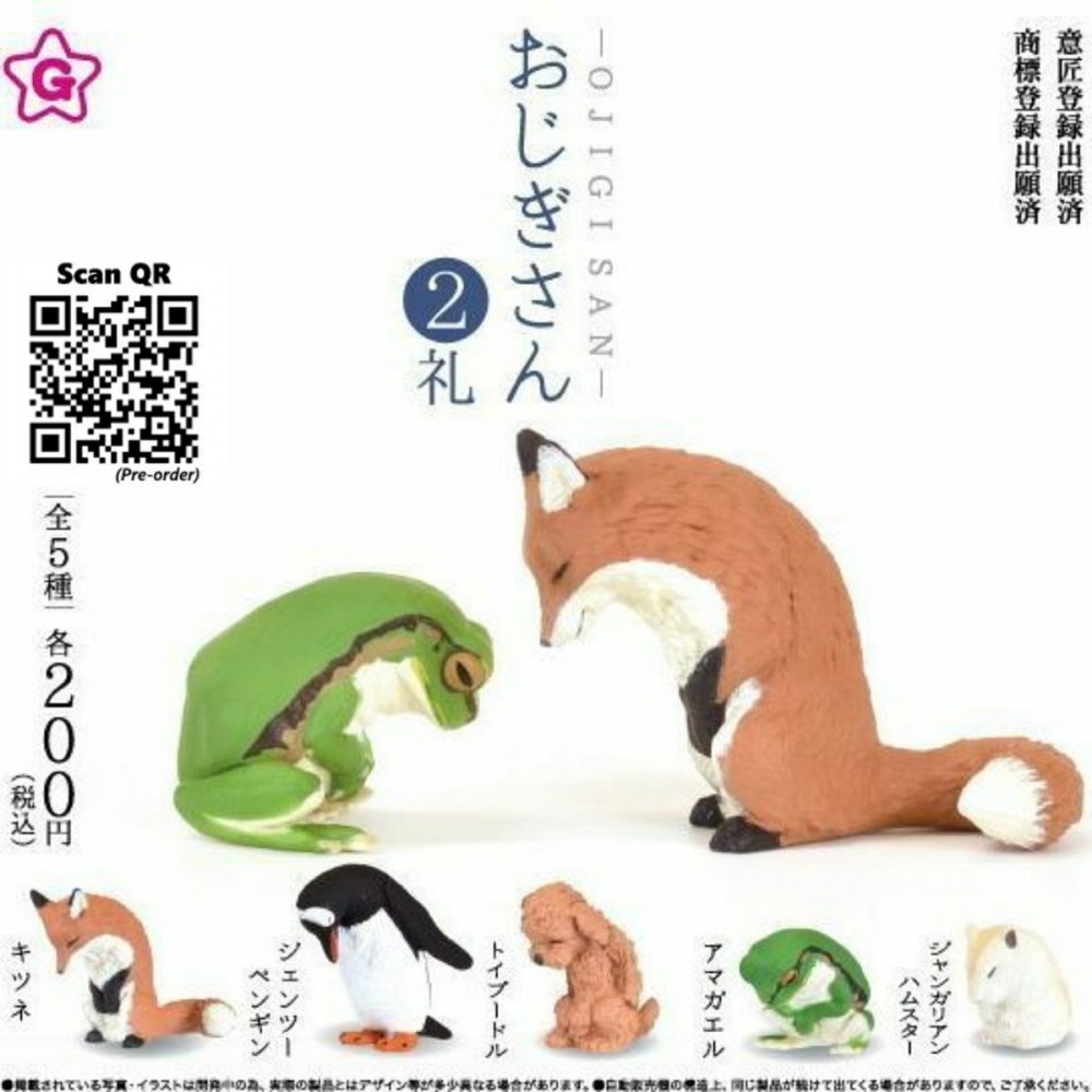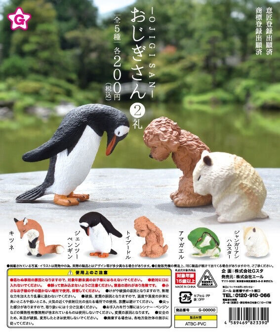 ▼第二彈也有5種動物,分別是貴賓狗、狐狸、企鵝、青蛙和小倉鼠。小倉鼠圓滾滾的,因為腿太短,鞠躬的時候整個坐在地上;紅貴賓瞇著眼睛低下頭,好像做錯事在道歉。