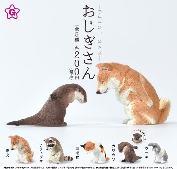 ▼這款「懂禮貌動物」扭蛋做得超級逼真。第一彈搶先登場的鞠躬動物有柴犬、三花貓、浣熊、兔子和水獺5種。牠們低下頭,謙遜地彼此鞠躬,非常有愛。