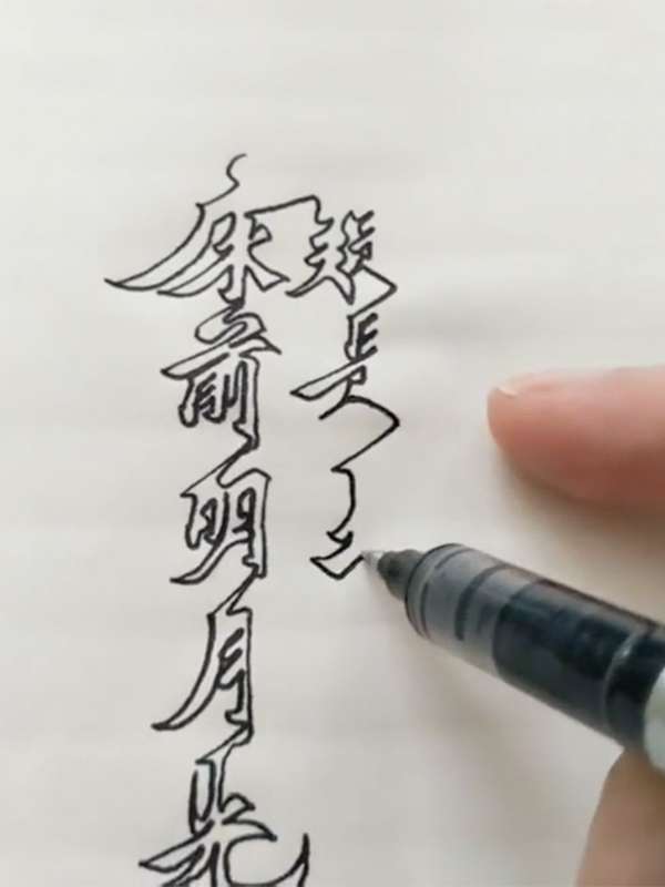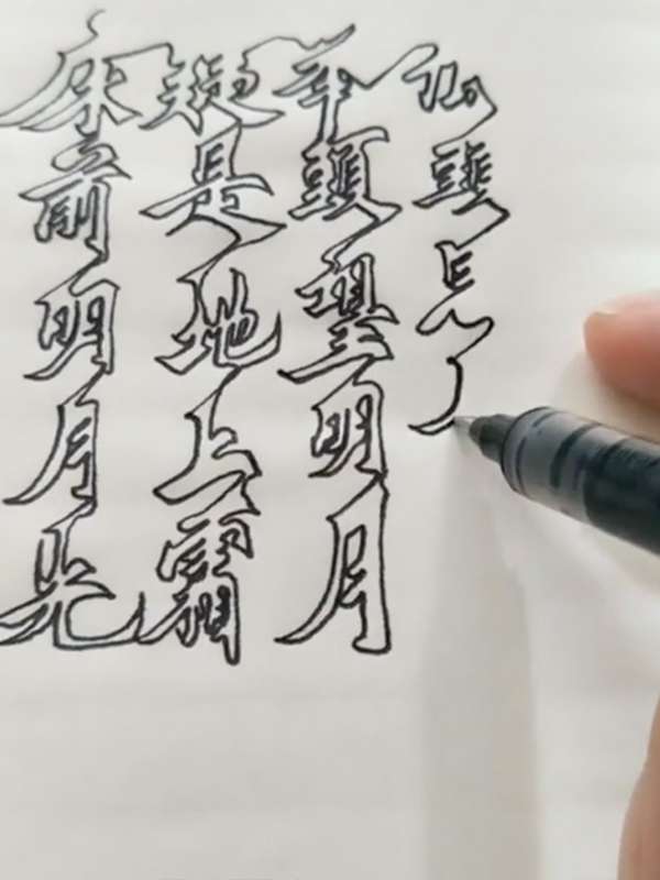 第一眼以為在亂寫…寫完竟是一首詩! 「一筆空心字」高手展示什麼叫一氣呵成
