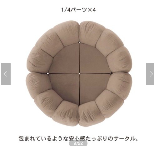 ▼組合起來拼成圓形,就變成了讓人安心的睡窩,躺在裡面休息,360度被包覆,安全感十足。睡窩的材質是順滑的短絨,坐墊有4cm厚,躺在上面暖暖的,非常適合秋天和冬天~