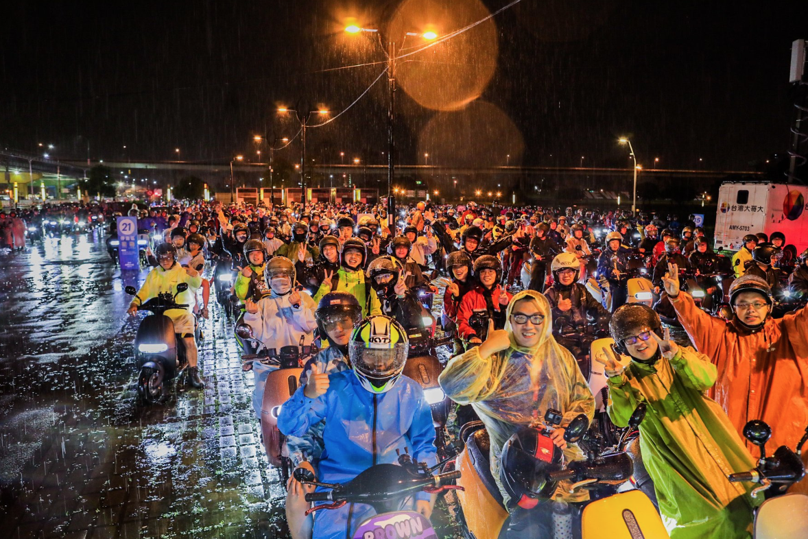 ▼超過1572台的電動機車車主於凌晨就在三重幸福水漾公園區停車場集合,大家都表現哋非常雀躍。