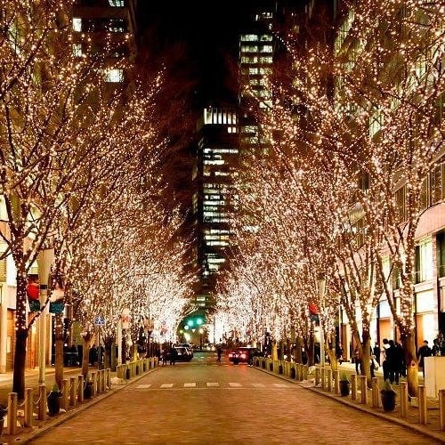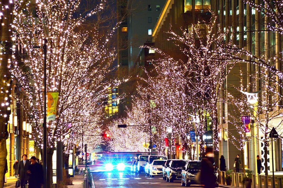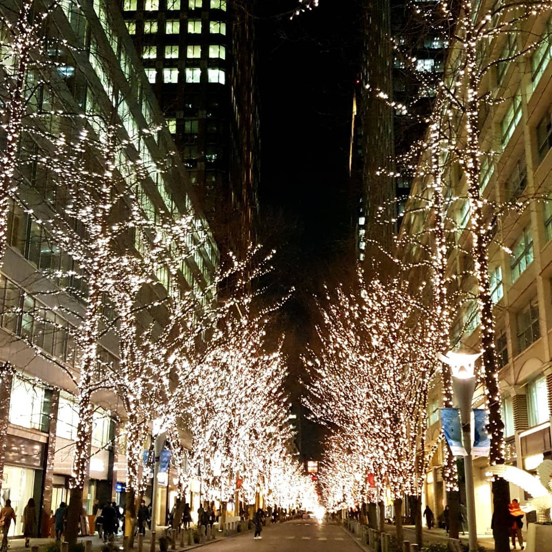 丸之內仲通的耶誕燈飾已經有17年的歷史了,每年這個時候樹上都會掛了大約100萬顆香檳金色的LED燈飾,從兩邊街道一直延伸至東京車站的丸之內廣場,全長約1.2公里!