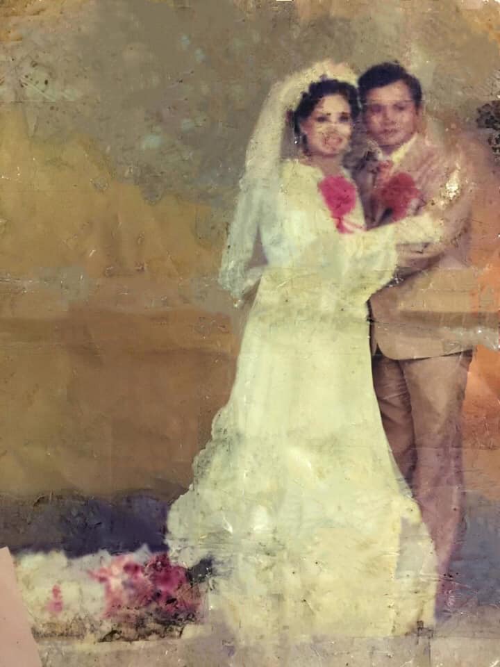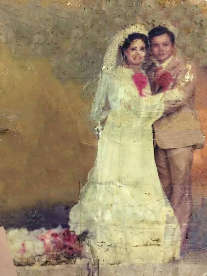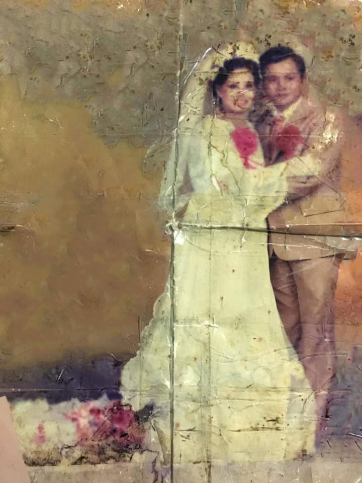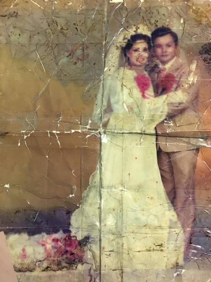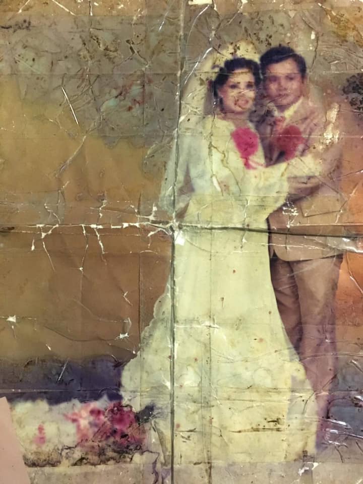 ▼原po在9月30日下午4時許於臉書社團分享了這張父母親的舊婚紗照,希望擅長修圖的網友能夠幫忙將照片修復撫平,好讓這張充滿意義的照片能夠在爸爸的告別式上使用。