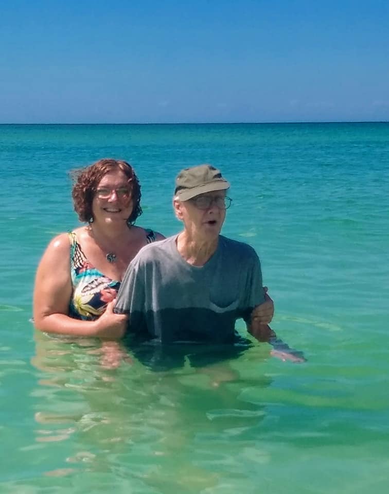 ▼桑德拉也將這段經歷分享到了臉書社團中,表示「爸爸在海洋中對我說:『是不是很諷刺?我在這裡住了20年,卻從來都沒有想要到海邊來,如今我想我已經愛上了海洋,但我不能這樣。』桑德拉則安慰爸爸:『爸爸你可以的,我會保障以後你一定會常到海邊來!』」