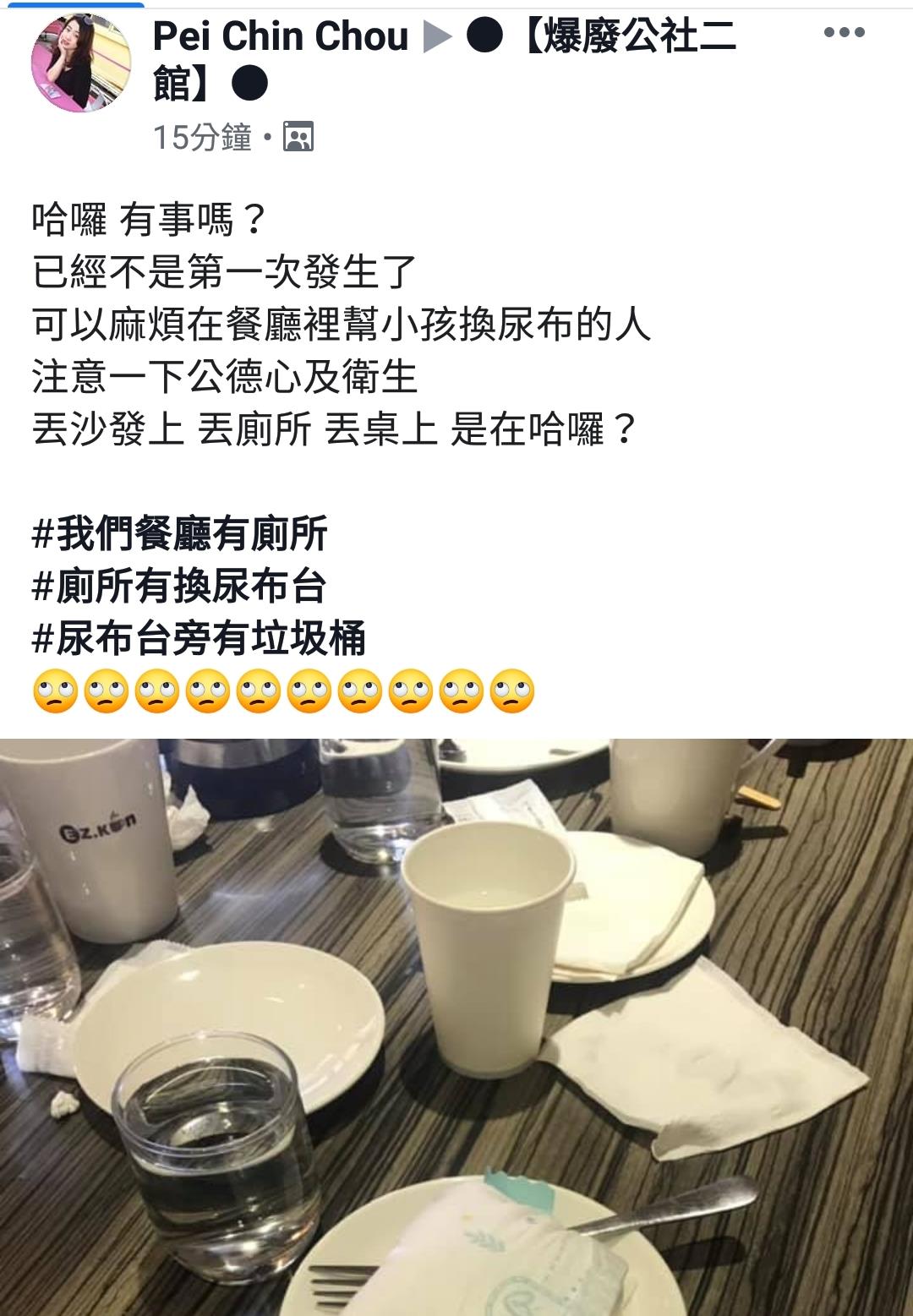 ▼原PO也強調說餐廳內其實有廁所,也有換尿布台,而且尿布台旁邊就有垃圾桶!一切都準備好了,客人卻完全無視。