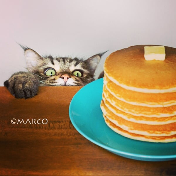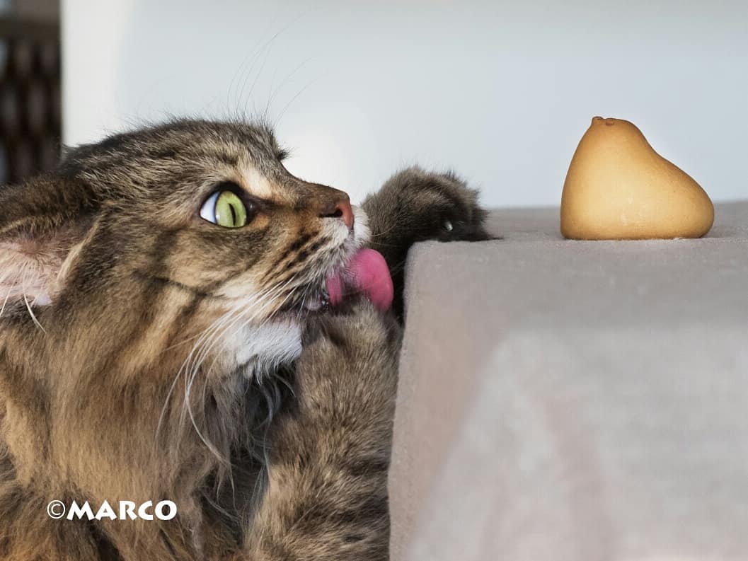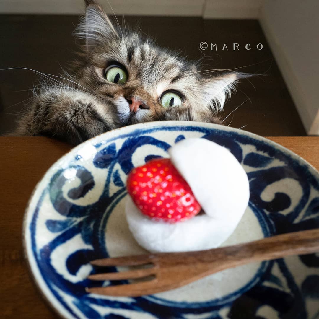 Gammo,你還記得自己是一隻高傲的貓咪嗎?就算愛吃也要有一定的限度啊。主人真的找到Gammo的軟肋了,感覺為了美食牠能付出一切!