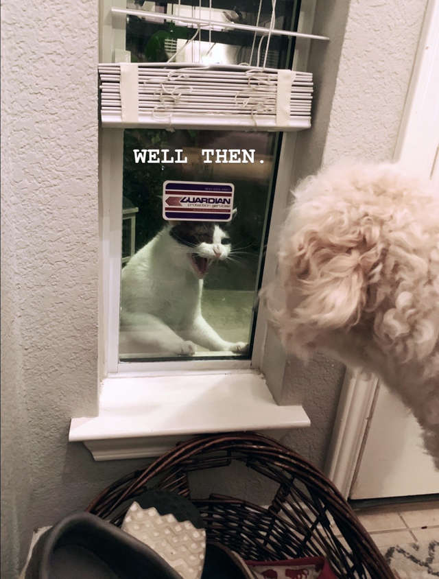 ▼結果呢…Greg一待就待了好幾天的時間!Erin和男友看電視時,Grey也會在窗外一起看,還會發出叫聲,似乎在指示他們快開門讓牠進去。