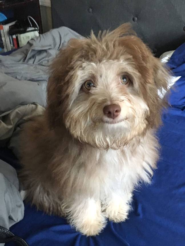 ▼Nori是一隻澳洲牧羊犬和貴賓犬的混種寶寶,現在與主人Kevin Hurless和Tiffany Ngo一起生活在美國西雅圖。牠有一雙清澈的大眼睛,還有粉紅色的嘴唇,嘴角時刻掛著似有似無的微笑,看起來比別的狗狗更像人。