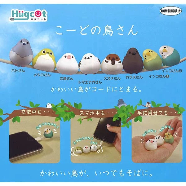 2019年10月07日日本萬代公司定期都會發售可愛的扭蛋,而最近引起話題的就是肥嘟嘟的鳥兒們!這些或看向前方,或歪頭的鳥兒是手機的充電線保護套,放上後就好像鳥兒站在電線上,8個收集起來的話排排站更是超可愛!