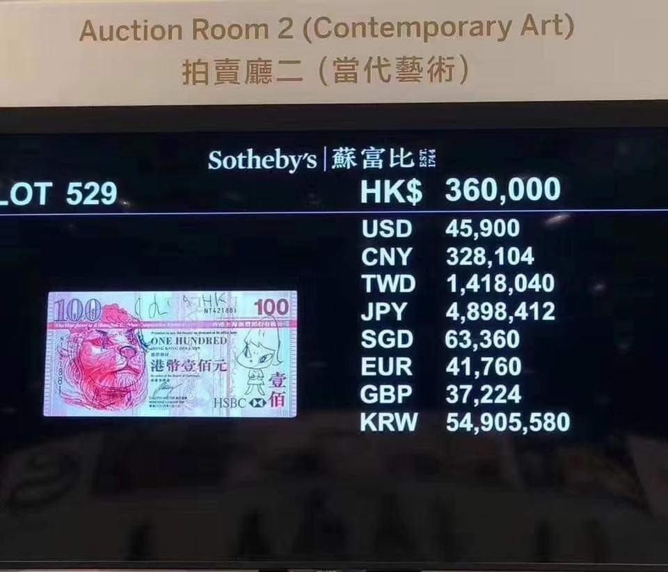 2019年10月09日日本當代藝術家奈良美智的名聲響亮,他的作品近日也交給著名拍賣行蘇富比在香港進行秋季拍賣,結果現場的亮點讓網友都驚嘆不已!其中一個拍賣品就是有奈良美智手繪圖案的100元香港紙鈔,拍賣出的價格竟然翻了4500倍!