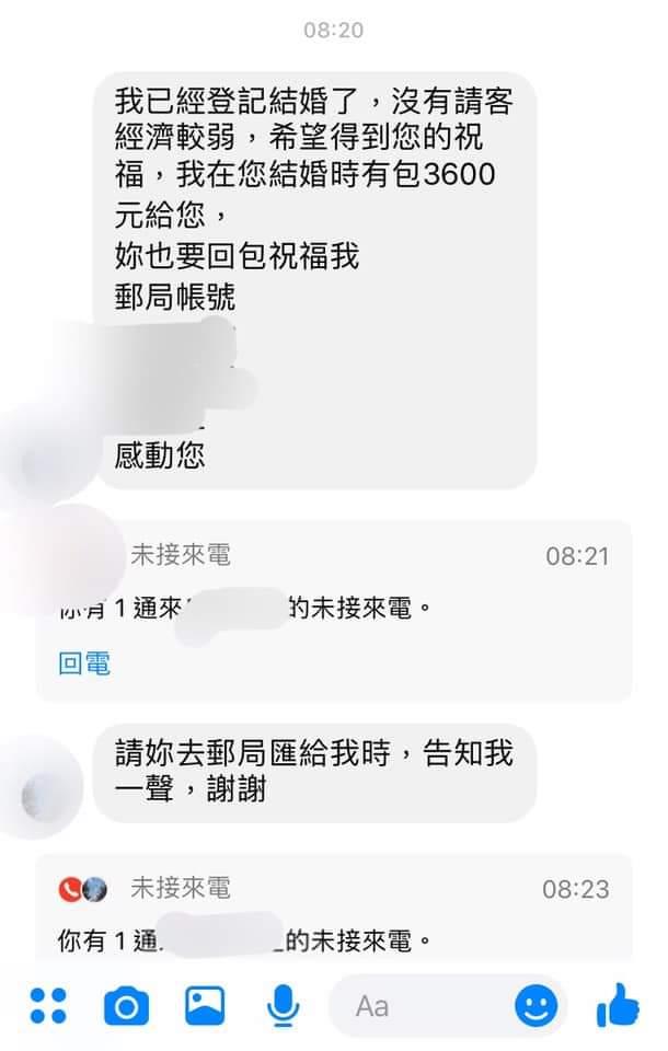失聯20年朋友突傳訊息「我結婚了」 一開口就要求「回包3600」還催匯款