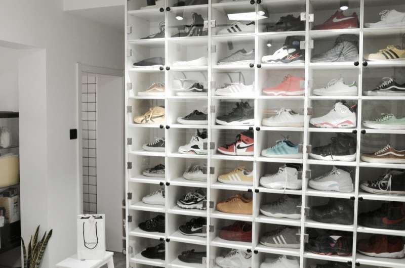 ▼最貼心的可能是拉門旁的巨型鞋櫃了,這72格鞋櫃每格可放兩雙鞋,為的就是讓老公可以展示他的收藏球鞋。
