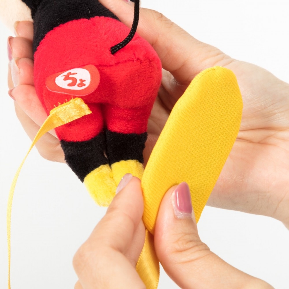 ▼不需要擔心把米奇放在肩膀上可能會掉落,只要幫他「繫好安全帶」,米奇就會牢牢地坐在你的肩膀上囉!
