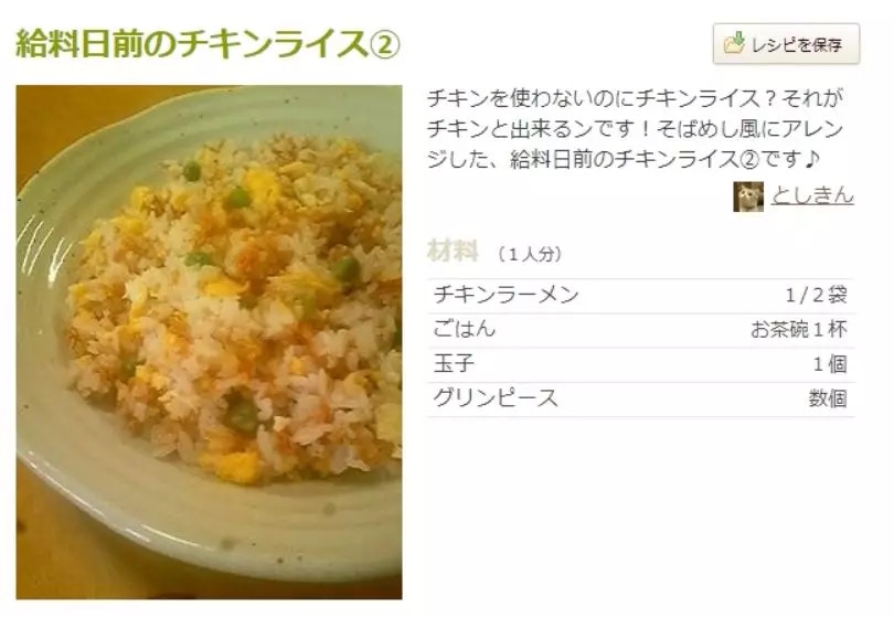 ▼雞肉炒飯:發工資前用雞肉拉麵混合米飯來炒;