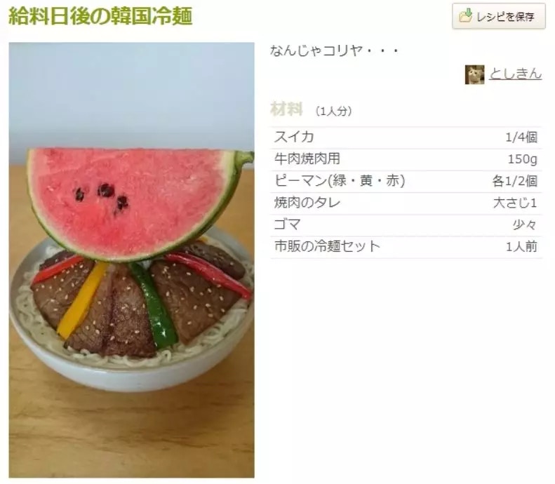 ▼除了曬寫有自己心聲的蛋包飯,這位大叔最出名的是曬「發工資前 vs 發工資後」的晚餐。貧富對比太明顯,讓人忍不住大笑。這是韓國冷麵,發工資前,一整晚素麵裡飄著一顆梅子,看起來很孤單;