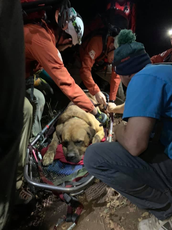 ▼當救援隊抵達時,Floyd 的主人也非常驚訝,因為他並不知道有人撥了911,他原本還計劃在這裡陪狗狗一起休息一晚,讓牠恢復體力再一起下山。