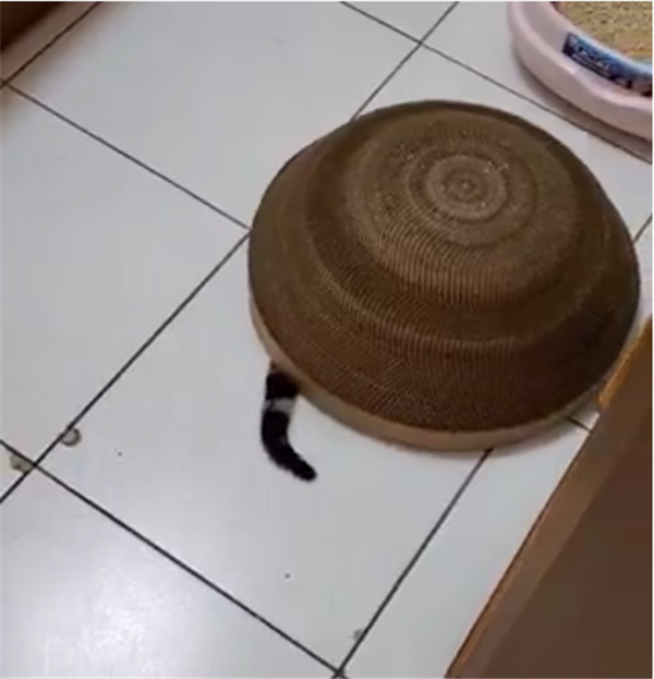 ▼盆子先是緩緩移動,接著速度加快,這下就露出「馬腳」了,裡面伸出了一條尾巴,吼!原來是喵星人藏在下面啊!隨著盆子的移動,尾巴一下縮進去,一下又露出來,看來這位「貓仙」演技還不夠成熟啊~