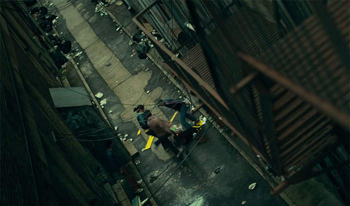 ▼亞瑟在巷子裡被揍的那一場戲有一種漫畫的感覺,這是導演刻意安排的。