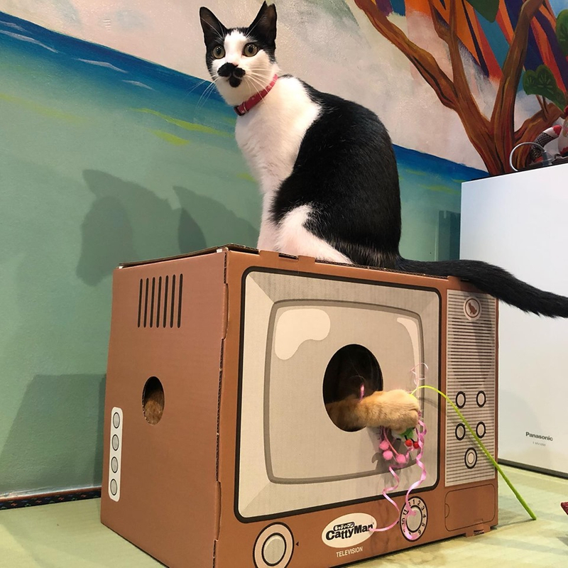 ▼店內也有許多為貓咪而設的娛樂設施,讓貓咪們和人類都能在這裡達到最放鬆的狀態!