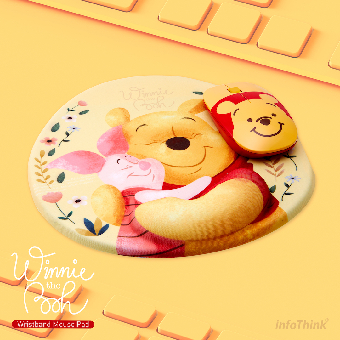 ▼小熊維尼護腕滑鼠墊:維尼手臂化身立體護腕,一個縮小版「男友臂枕」的概念,柔軟減壓又舒適,搭配小豬的溫暖擁抱與背景小花設計,為生活增添繽紛樂趣。