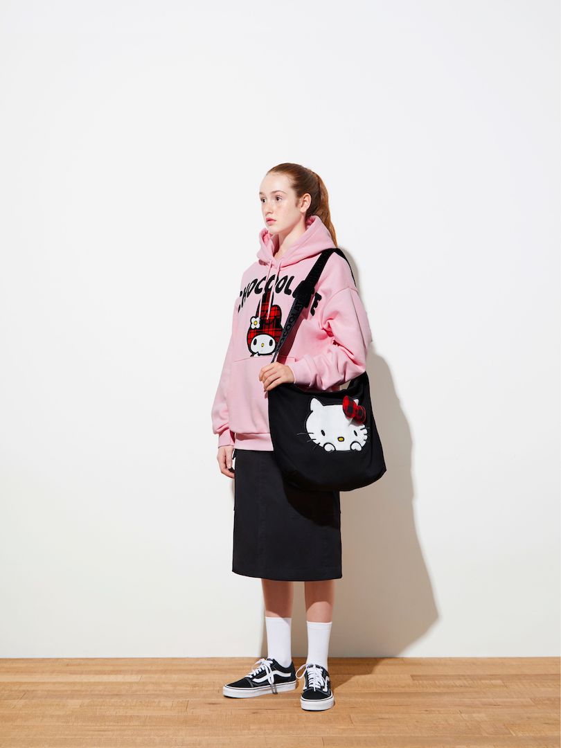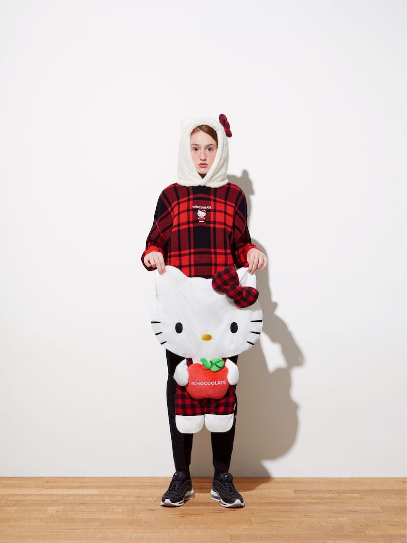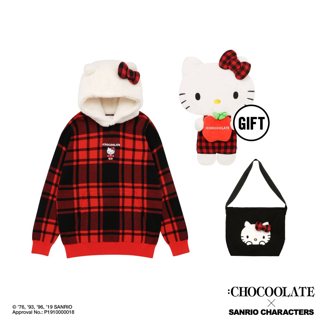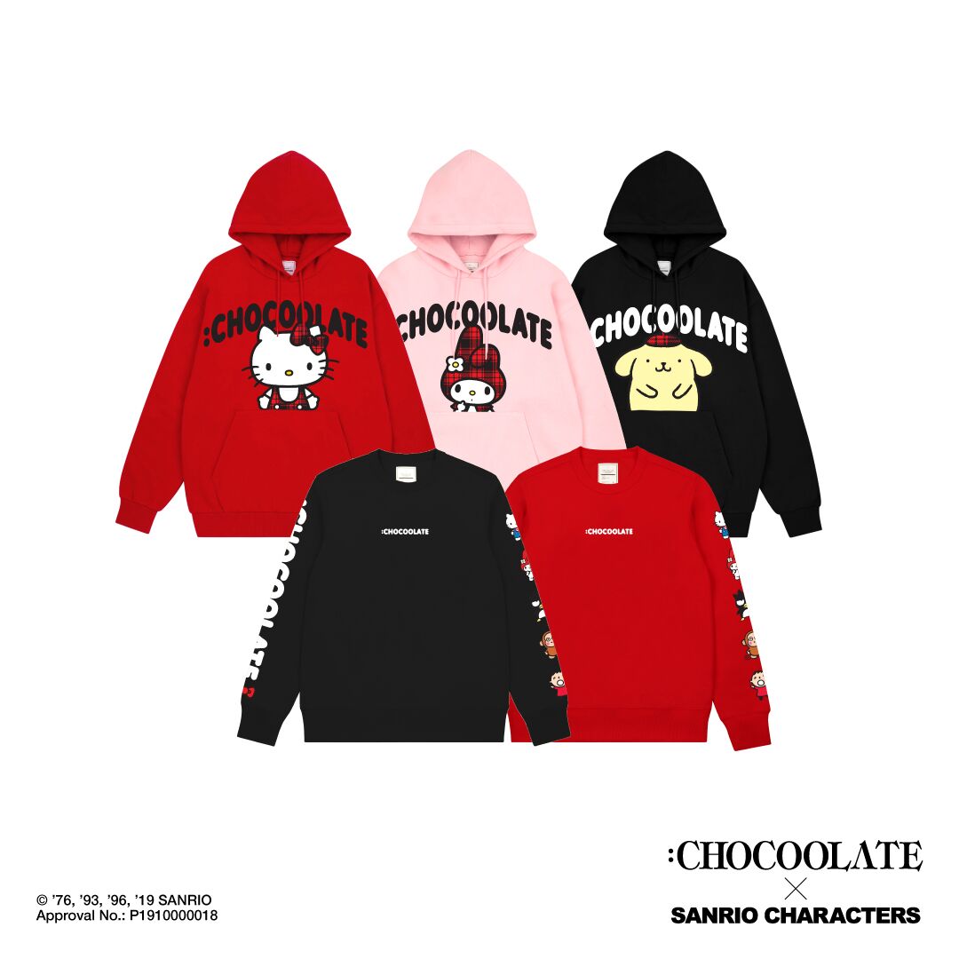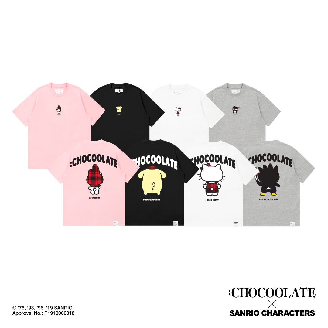 ▼:CHOCOOLATE這次與三麗鷗的聯名以英倫格紋為主題,也搭配品牌常用色調「黑、白、灰」,加上鮮豔的紅色與粉嫩色系,推出多款印花T恤、連帽T等,讓粉絲們全都眼睛冒心心~