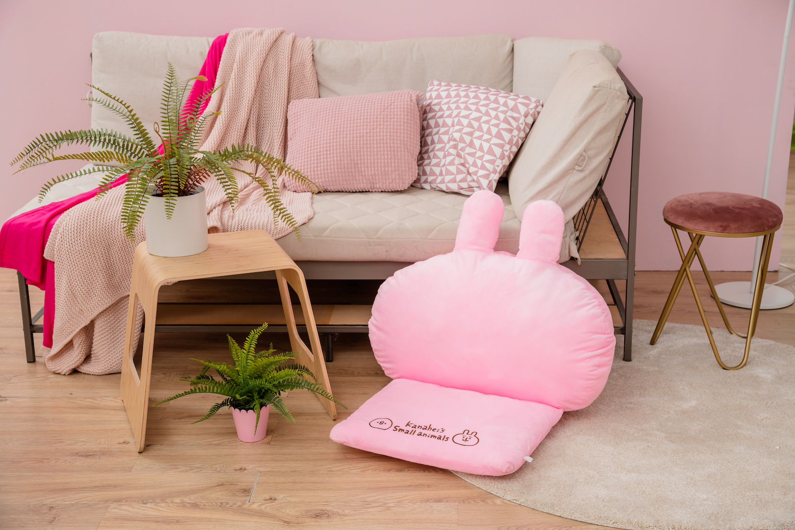 ▼療癒沙發:可愛中帶點「軟Q」的療癒沙發,獨特開發的粉紅兔兔造型,靠枕是約75公分的粉紅兔兔大頭,坐墊是舒適的絨面,讓人一坐就愛上。