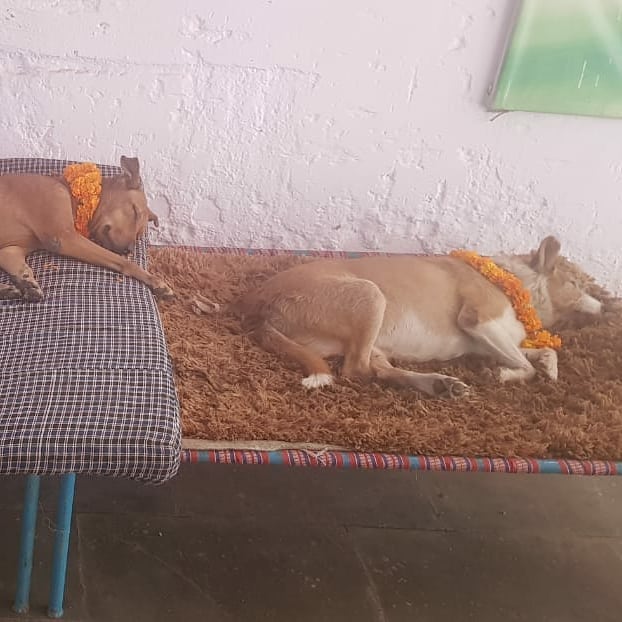 2019年10月29日狗狗是人類最好的朋友,這一點是完全毋庸置疑的,而狗狗的重要在尼泊爾就更加明顯!每年在印度教的節日排燈節(Diwali)的第二天,都會有專門慶祝和感謝四足動物的日子,這一天被稱為 Kukur Tihar 或者「狗日」,是專門敬拜公狗的日子!