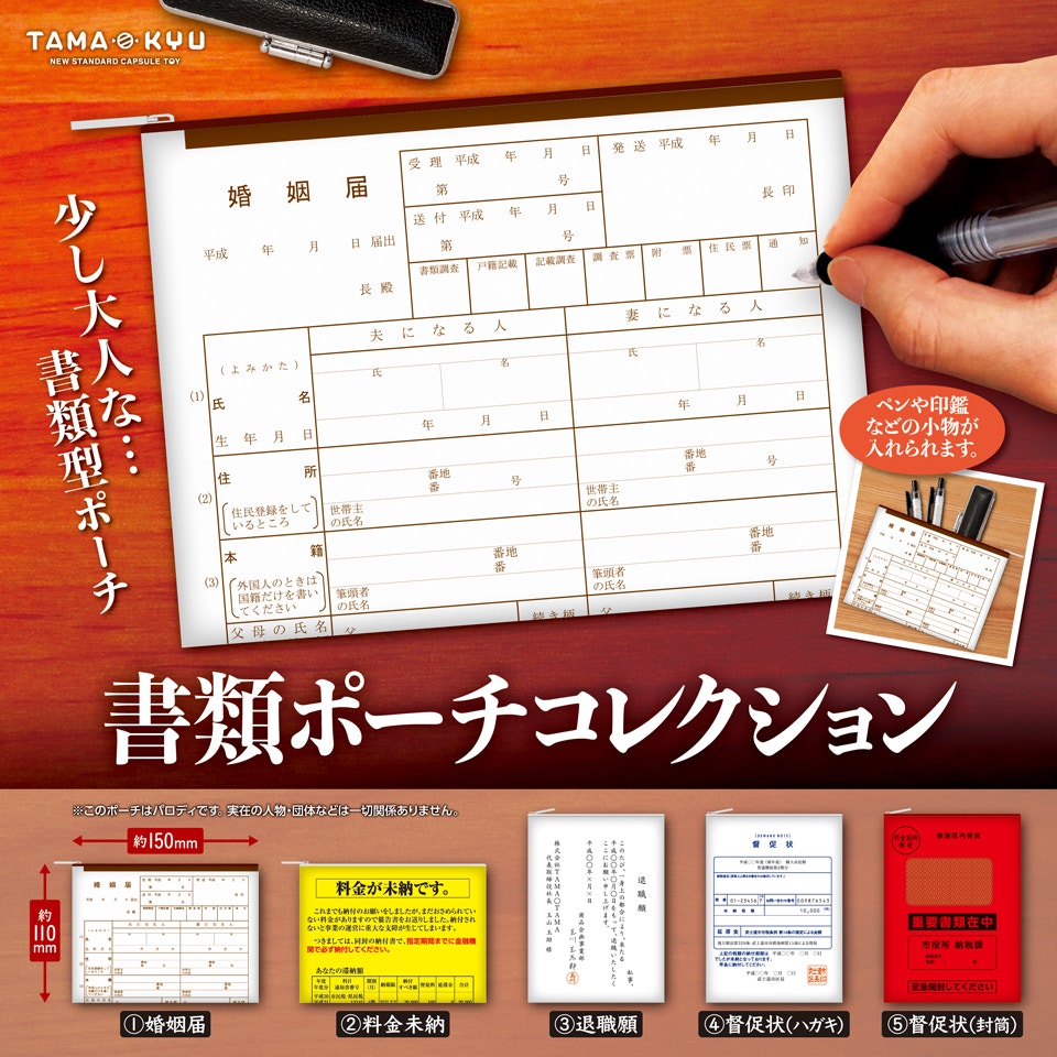 ▼Tama-Kyu之前推出過一款很有趣的筆袋,上面印著辭職信、結婚證明書等圖案,買回來後可以在上面寫自己的名字。