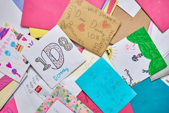 ▼護理中心的工作人員很關注Dorothy的身心健康,在她生日之前就呼籲社會人士給她寄送生日卡片。今年Dorothy收到了654張生日卡片,還有很多巧克力和香檳。看到這些禮物,Dorothy超級開心。