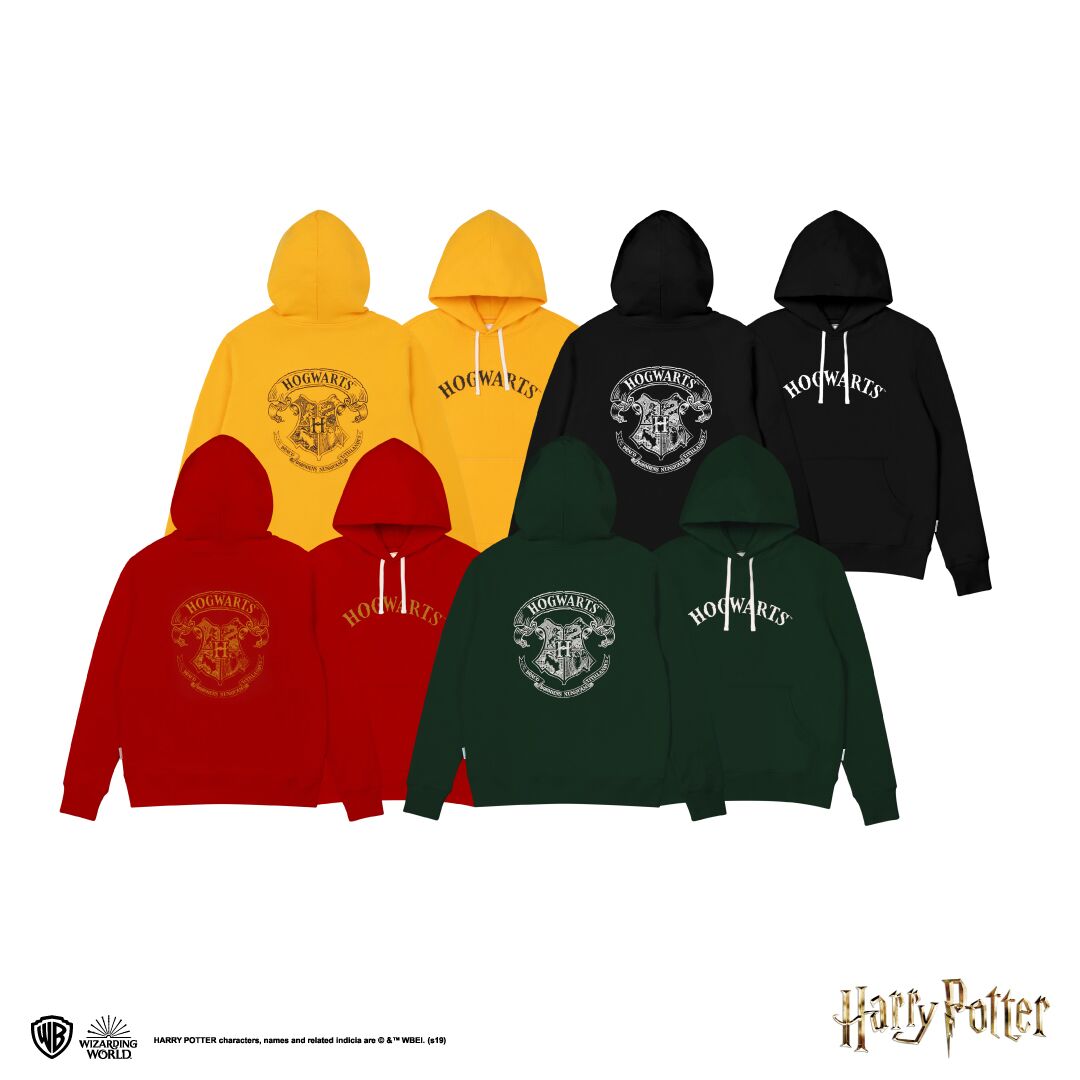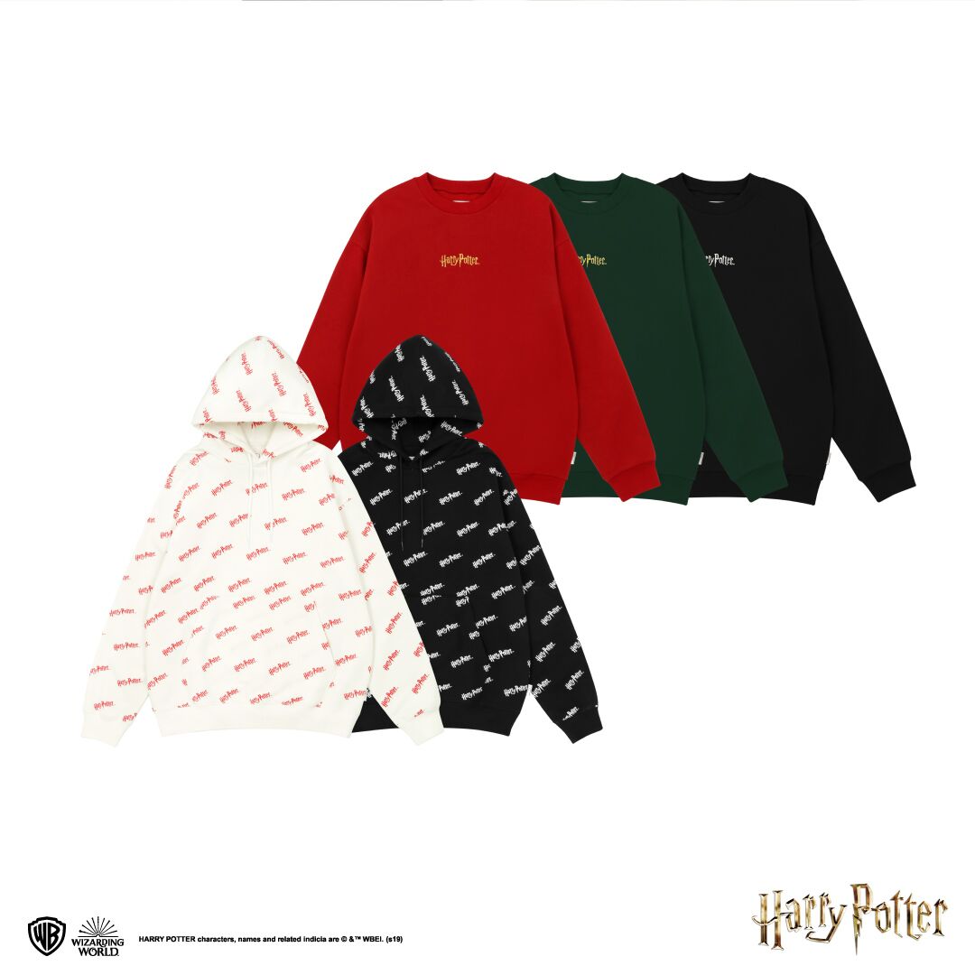 ▼不愛這麼多圖騰、圖案的粉絲,也可以選擇帽T及長袖T,長袖T繡上金線/白線的「Harry Potter」字樣,非常有質感;而帽T則是採取整件印上字樣的方式,兼顧時尚潮流與童趣。