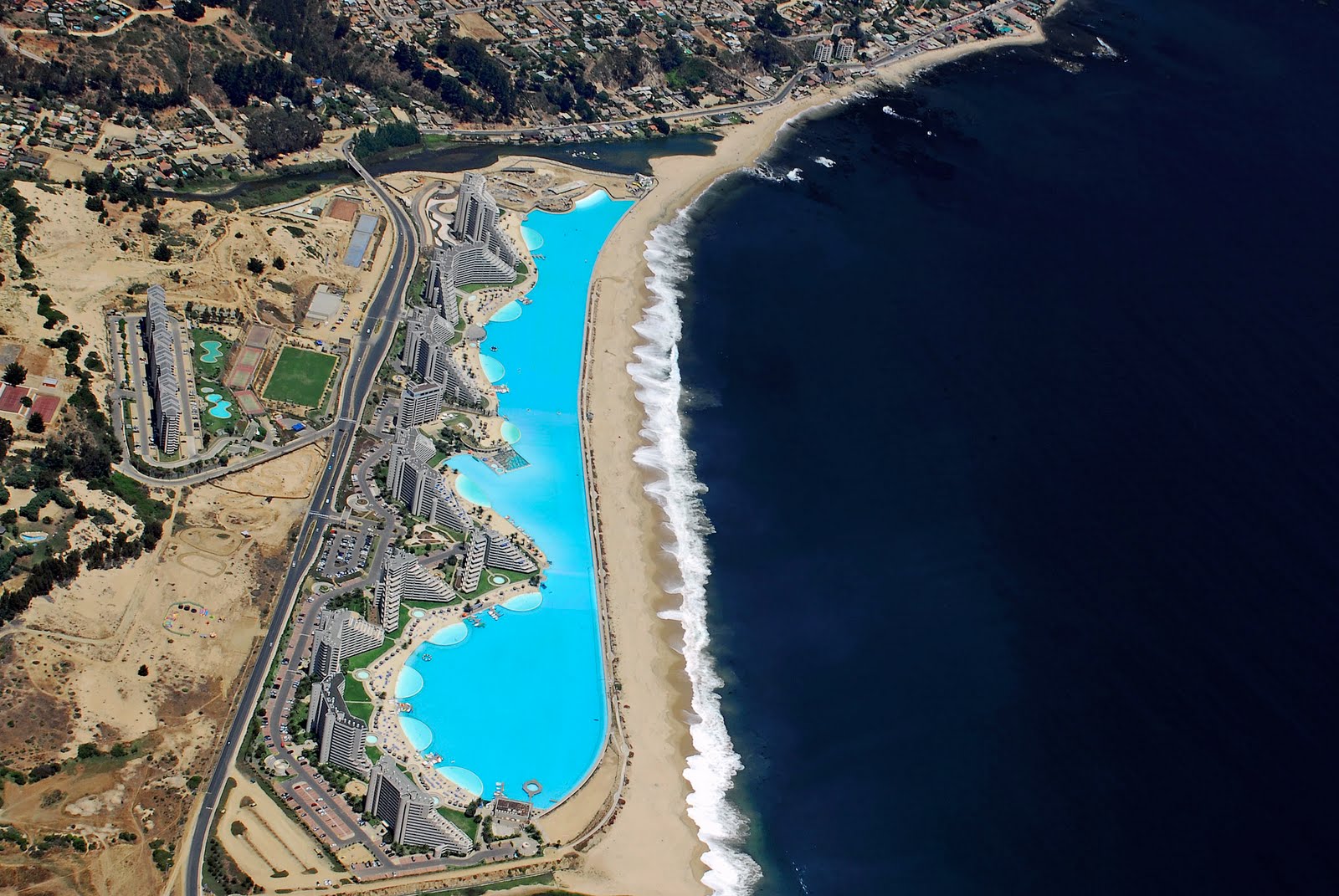 2022年07月29日夏天最適合到海邊度假啦,日光浴、游泳、潛水、皮划艇…每一種都超好玩。位於智利度假勝地阿爾加羅沃(Algarrobo)的聖阿方索度假村(San Alfonso del Mar)就能滿足你所有的需求,這裡有一座巨大的游泳池,在泳池中玩帆船都不覺得擁擠。