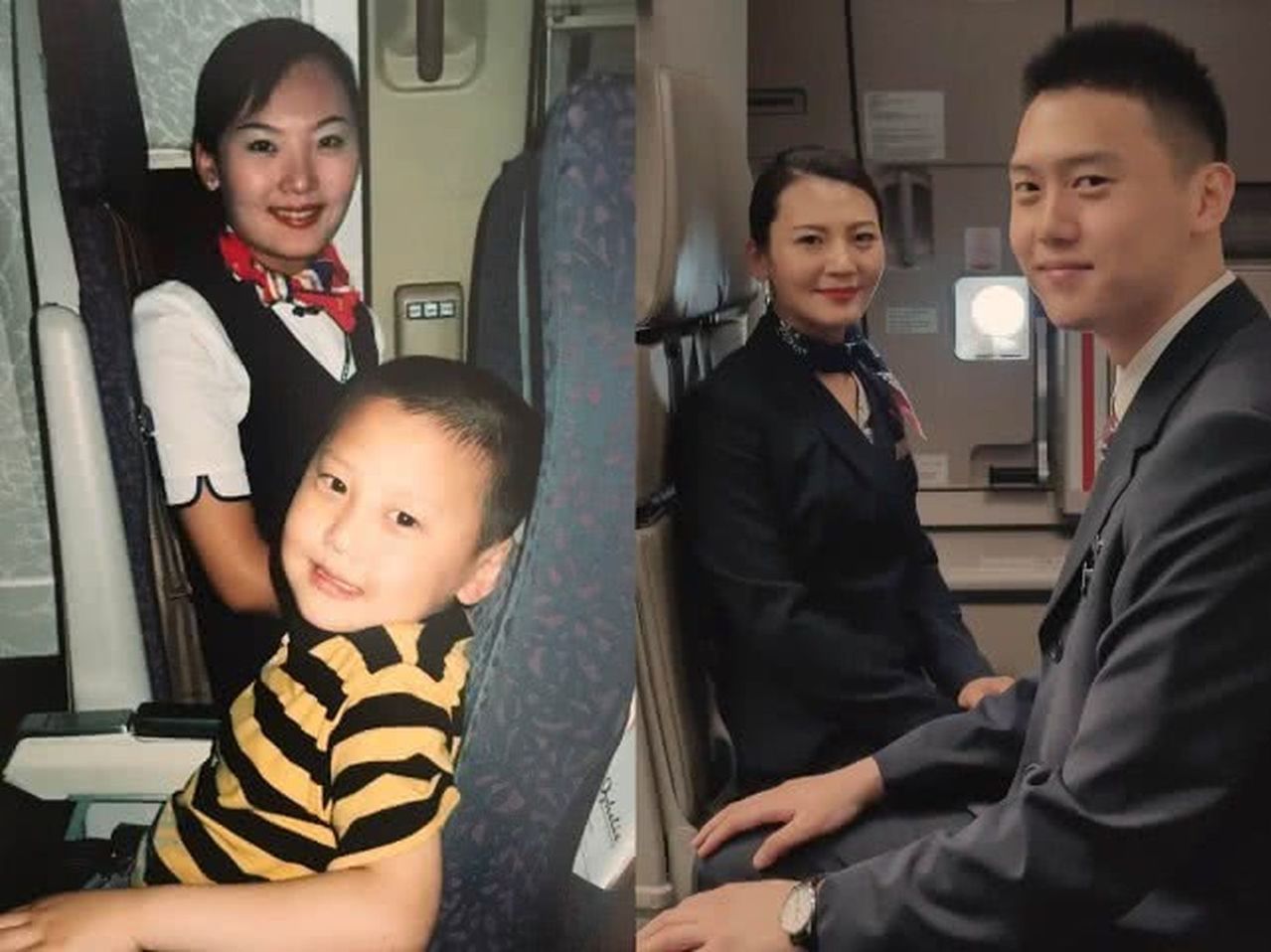 緣分好妙!小男孩第一次搭飛機跟空姐合照 15年後「成為師徒」再拍一次