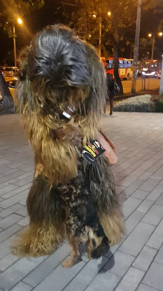 ▼原來今年萬聖節,有一位厄瓜多爾民眾為了宣傳最新的《Star Wars 9》電影,趁著萬聖節裝扮成了經典的毛絨絨生物「丘巴卡」的模樣。