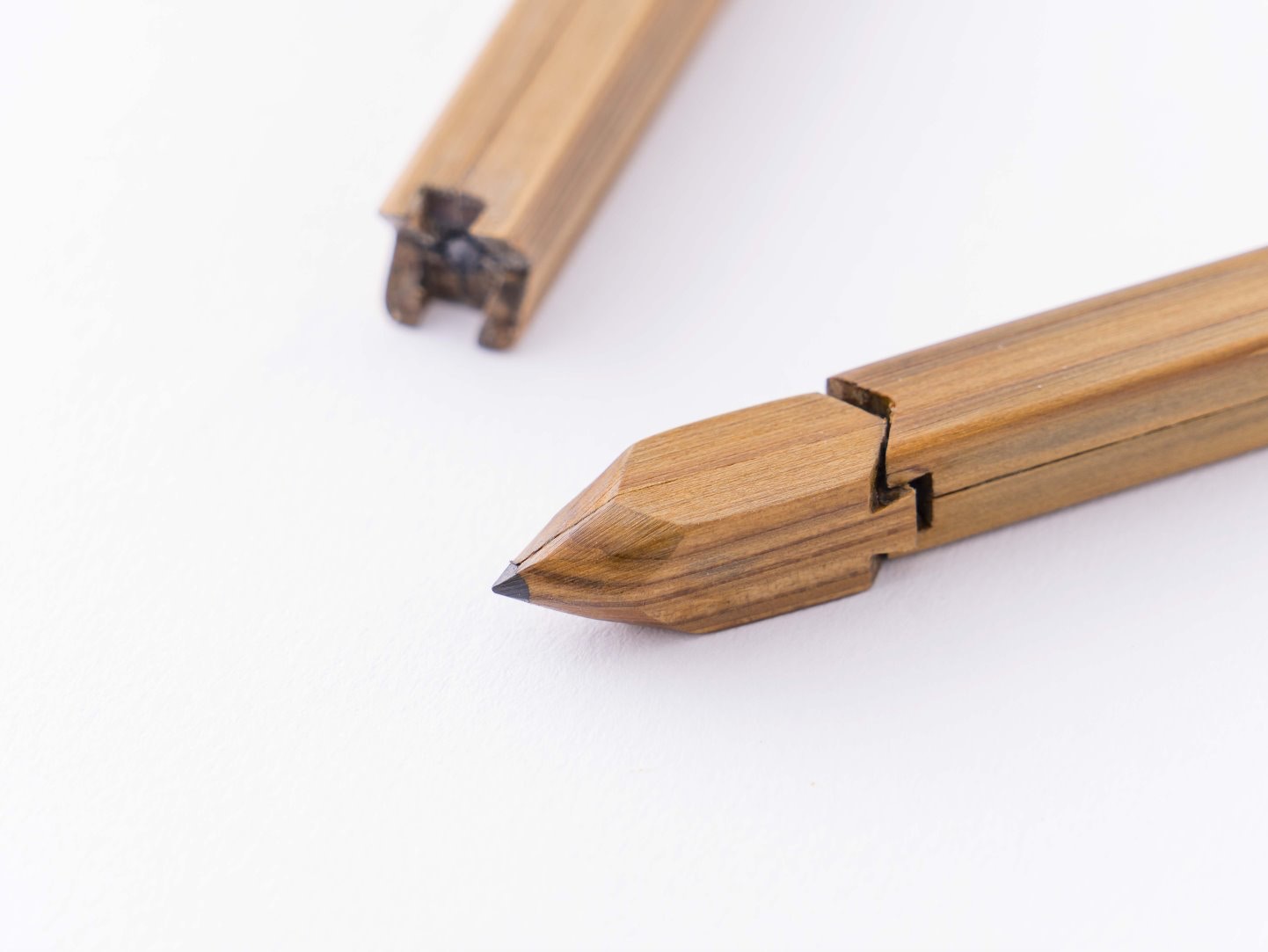 ▼5.比護拓郎改良了普通的鉛筆,在鉛筆前端用上了「組木」的技術。