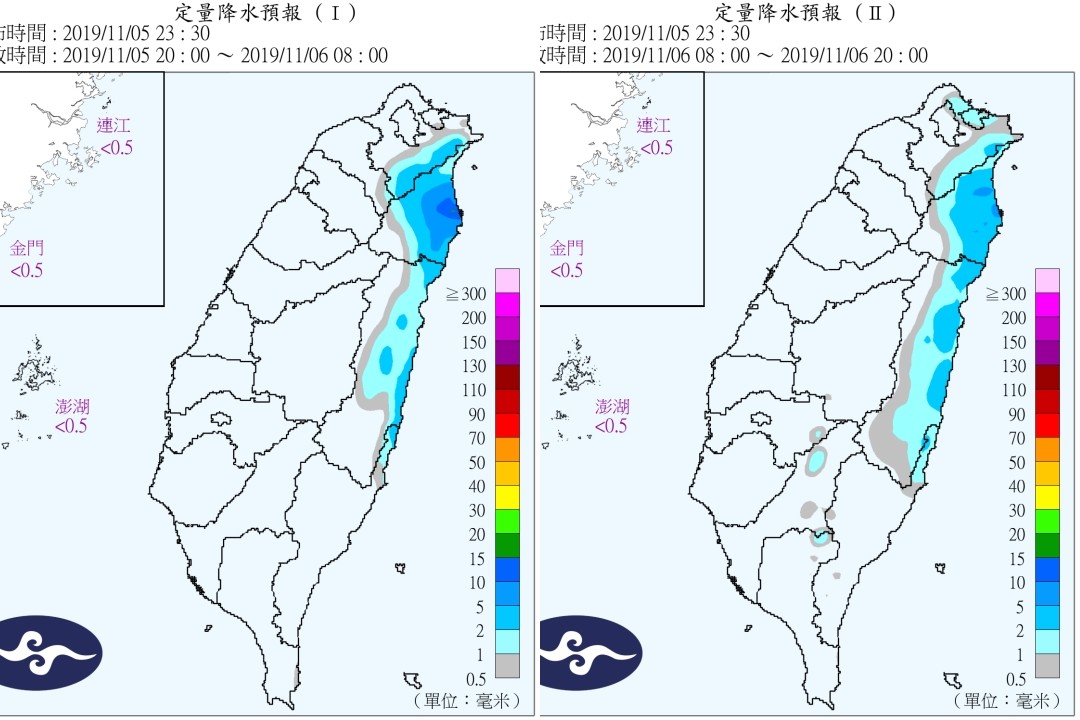 空氣品質的部分,由於今日東北風稍減弱,雲嘉南以南位於下風處,污物易累積;午後受光化作用影響,臭氧濃度易上升;雲嘉南沿海地區偶有強陣風發生,可能引發揚塵。良好等級的地區在宜蘭、花東,北部、竹苗、中部空品區及澎湖地區為「普通」等級;雲嘉南、高屏空品區及馬祖、金門地區為「橘色提醒」等級。